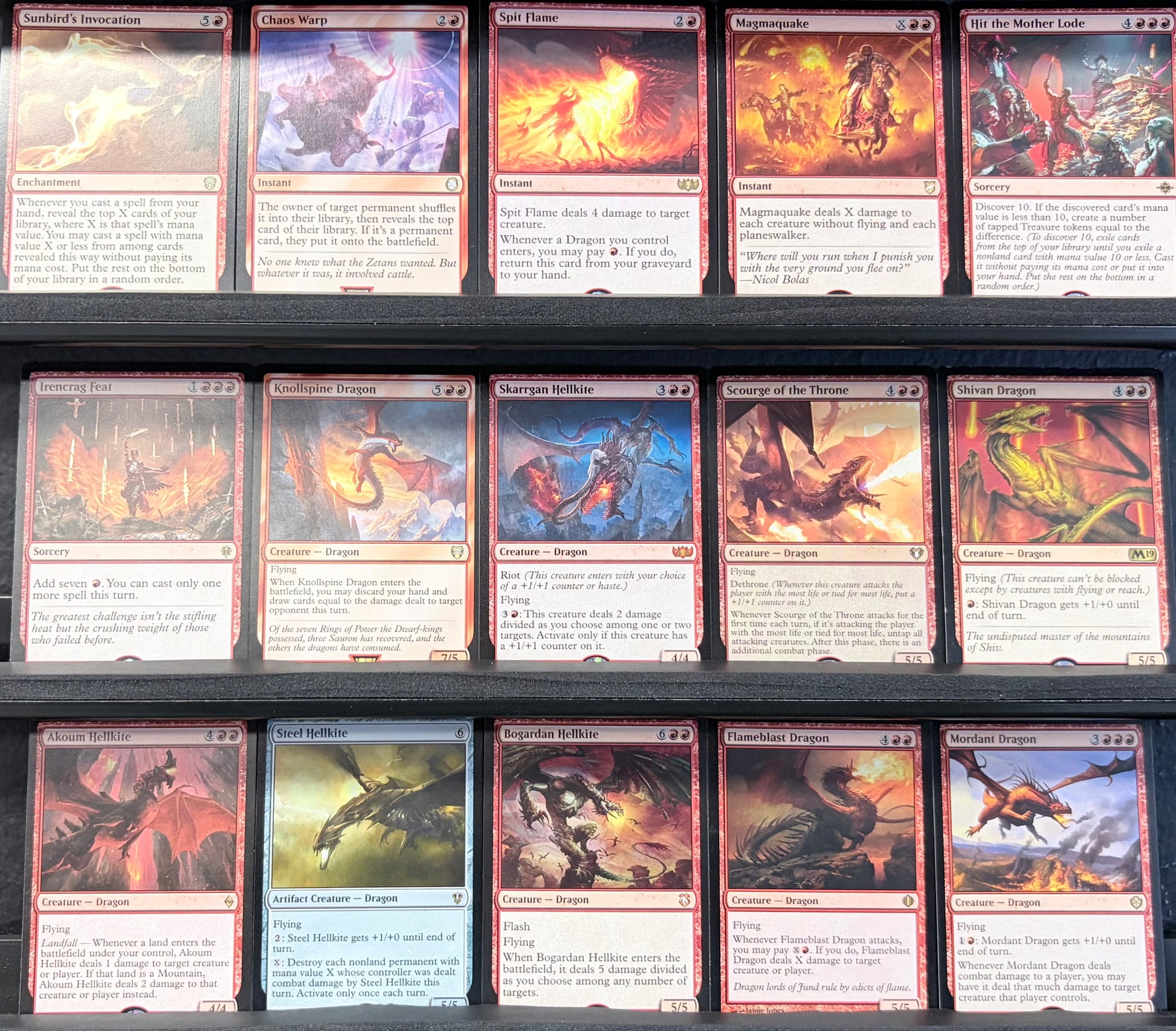 β’ Value-generating dragons such as Knollspine Dragon, Dragon Mage, and Akoum Hellkite ensure your hand stays full and your damage scales sky-high.