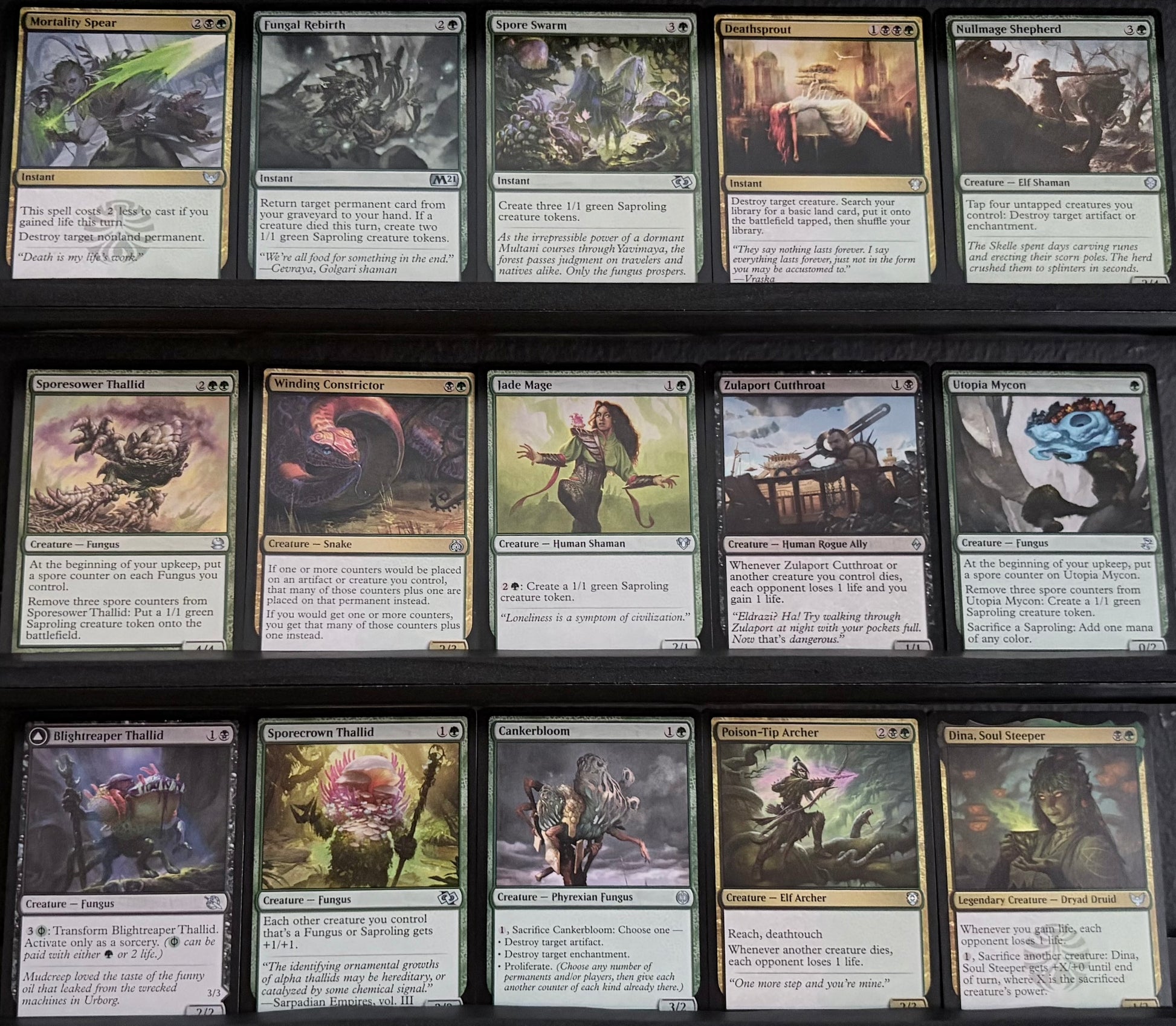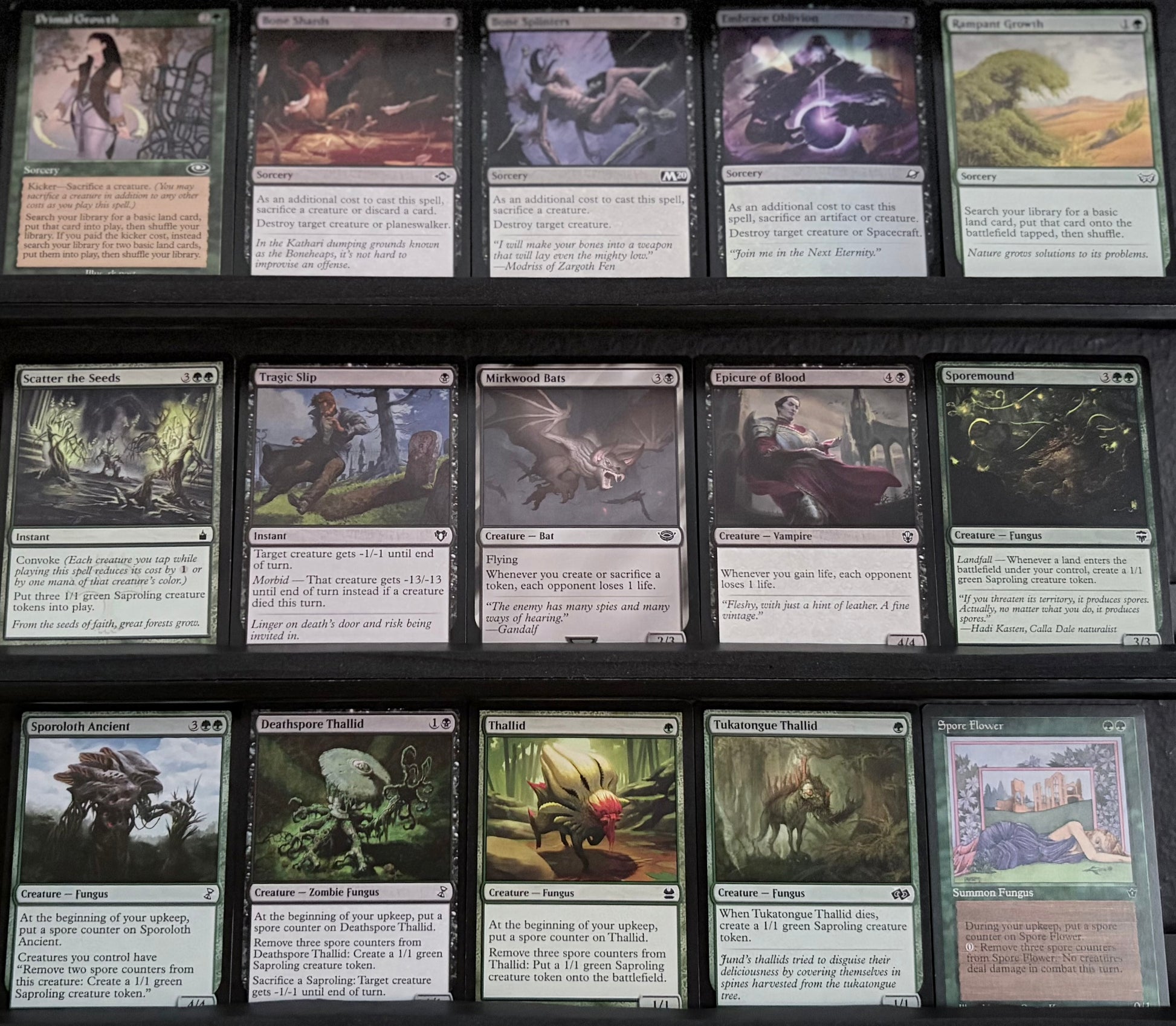 • Token engines such as Sporemound, Sporesower Thallid, and Sporecrown Thallid keep the saproling swarm alive and buffed.