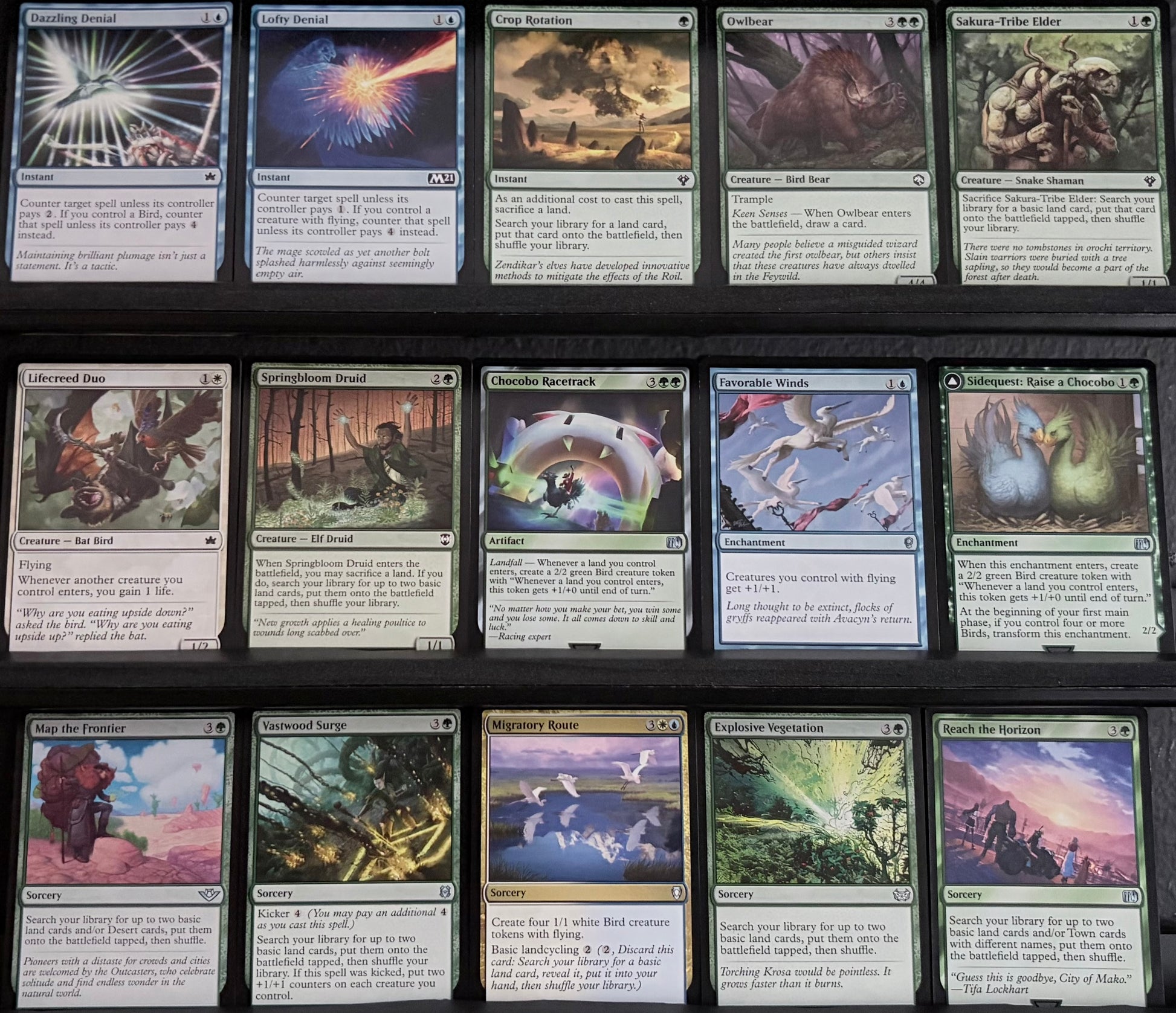Commander: Choco, Seeker of Paradise A Bant flying-tribal deck that swarms the skies with Birds/Chocobos, pumps the team, and draws piles of cards off your flock. Curve evasive threats, snowball with anthem effects, then close with token bursts and overwhelming air power.