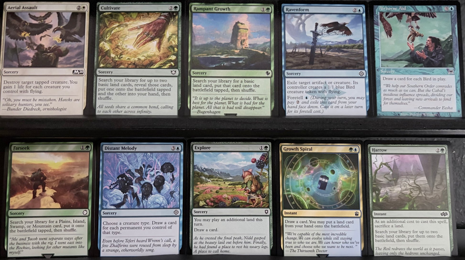 • Efficient ramp/fixing: Farseek, Rampant Growth, Cultivate, Harrow, Growth Spiral, Crop Rotation, Explosive Vegetation, Vastwood Surge.