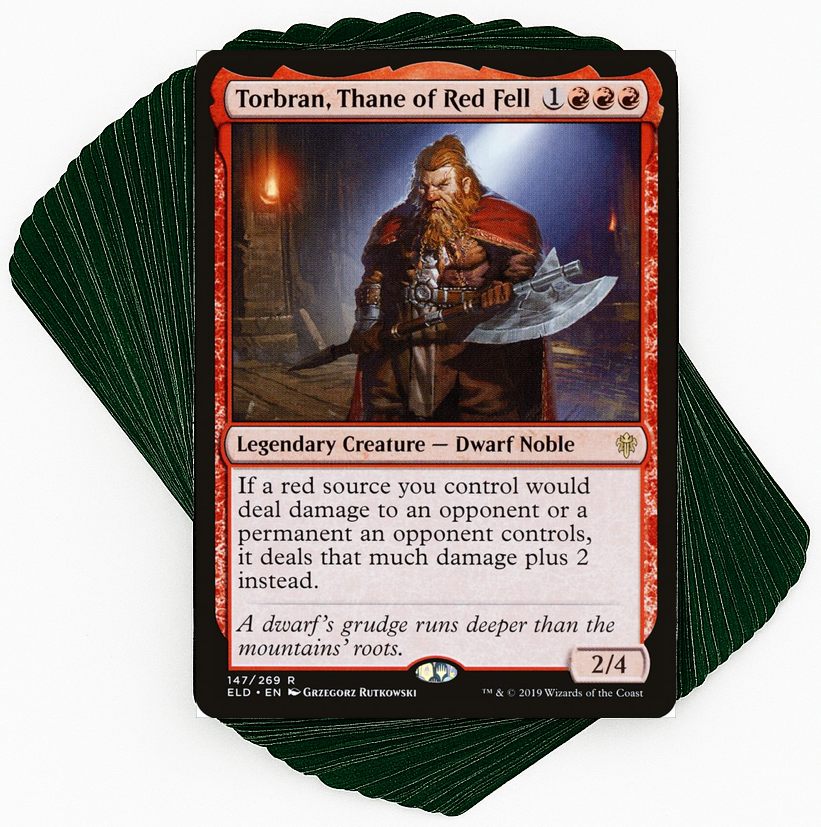 In the realm of unbridled fury, where every spark threatens to engulf the world, Torbran, Thane of Red Fell stands as the ultimate amplifier of red devastation. In this deck, the strategy is as simple as it is brutal: cast burn spells, summon aggressive creatures, and let every source of damage be magnified by Torbran's fearsome presence. Every ember and every blaze is supercharged, transforming modest burns into cataclysmic infernos that leave opponents reeling.