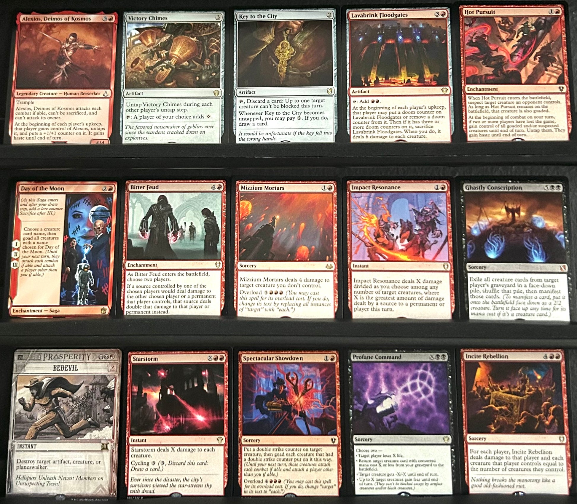 Chain Reaction, Storm's Wrath, and Mizzium Mortars sweep away any armies foolish enough to oppose you
