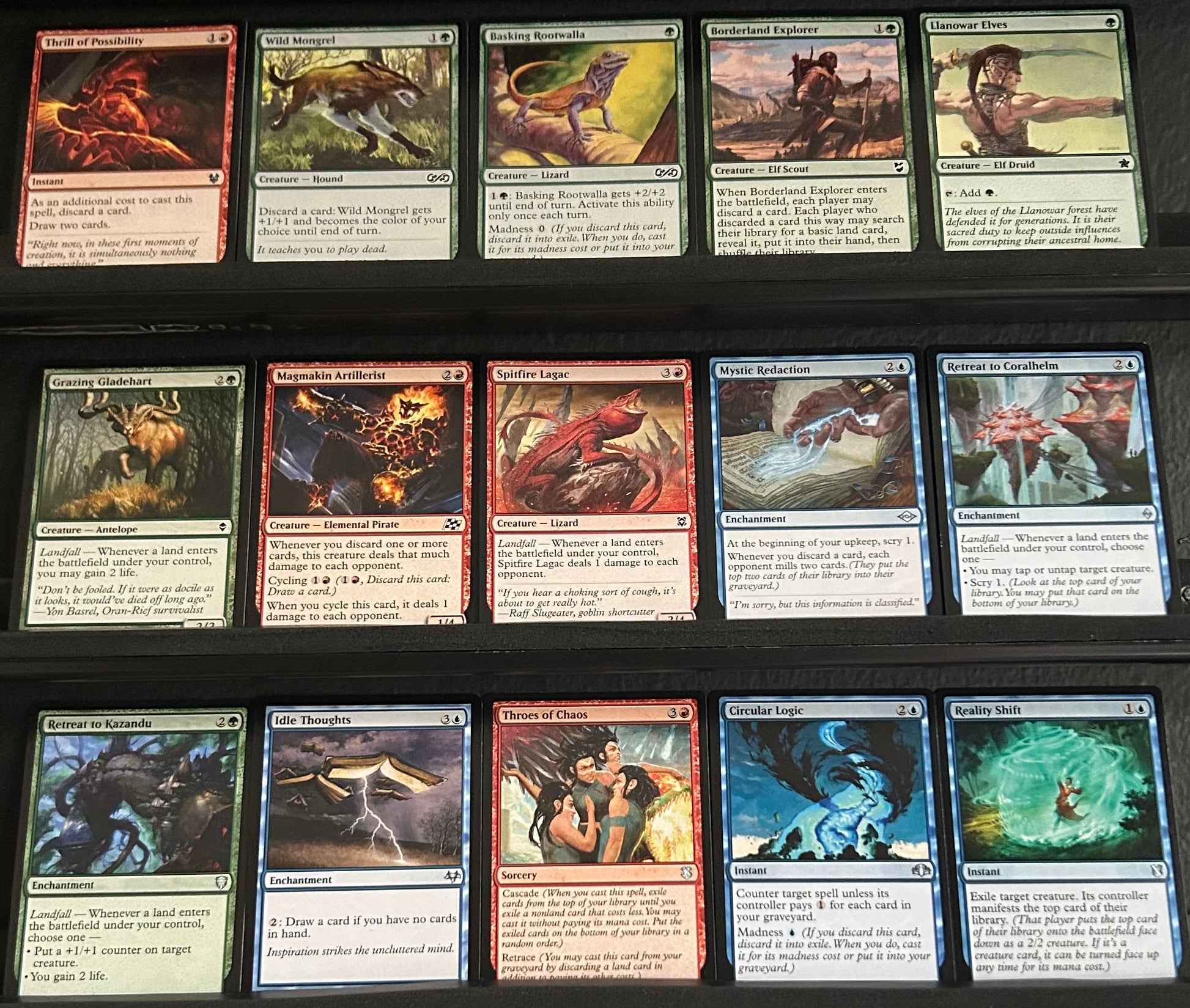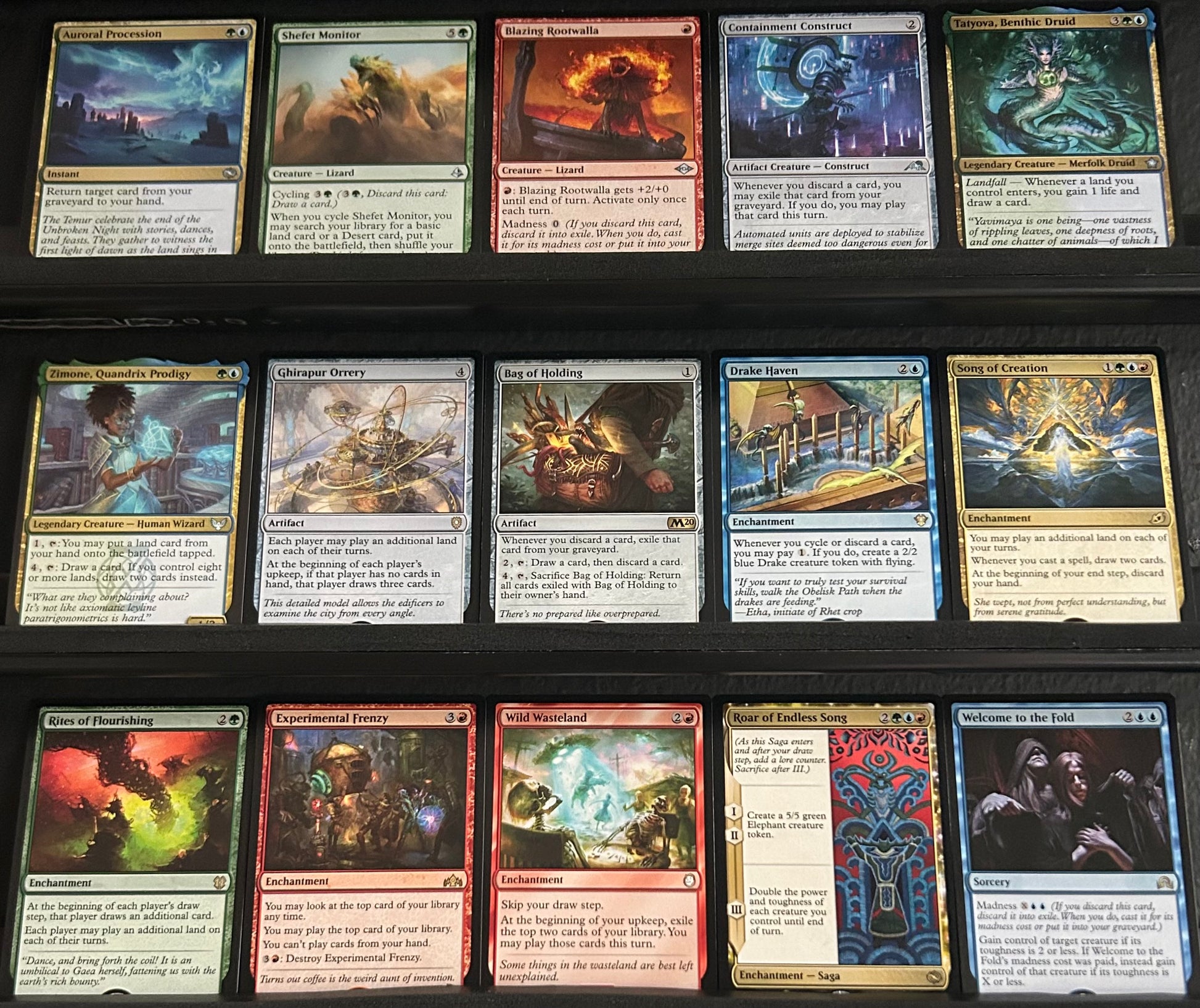 The second group is to help us cast spells and play lands from other than our hand. Fblthp, Lost on the Range lets us Plot cards to cast for free on later turns, Experimental Frenzy lets us play cards from our library, but turns our hand off altogether, and Eruth, Tormented Prophet and Wild Wasteland both prevent us from drawing cards to begin with and instead let us play cards from exile. There are also cards with Flashback, Foretell, Rebound, Suspend, Retrace, and more for even more value.